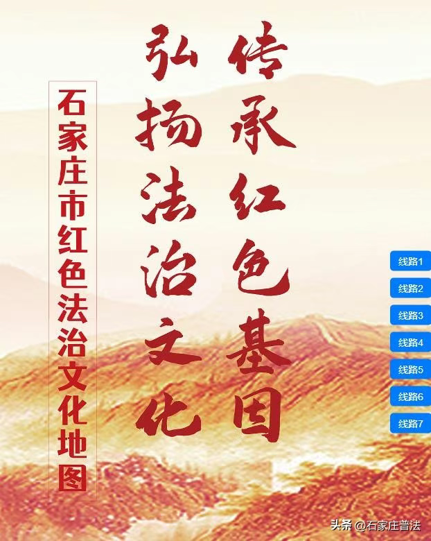 以“寻法源、兴法治、铸法魂”为主题,开展了红色法治文化建设,形成了60个红色法治文化遗存目录,设计了7条红色法治文化旅游路线,制作了宣传画册,全方位、全角度、全景式展示石家庄市法治文化成果。
