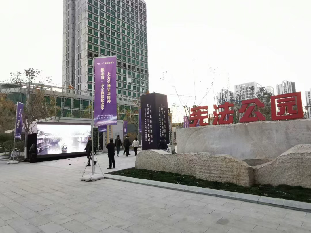 公园总占地面积1.6万平方米,以“寻宪、立宪、修宪、奉宪”为主线,用图文并茂形式将宪法元素与法治文化紧密结合,生动直观展现我国宪法发展脉络、公民权利与义务、宪法宣誓词、国家宪法日等基本知识,不仅为广大市民提供了一个健身休闲场所,而且增添了一个走近宪法法律、学习宪法法律的生动平台,实现将宪法法律学习宣传以更加人性化方式融入到市民日常生活中、不断满足其日益增长的法治文化需求的目标。