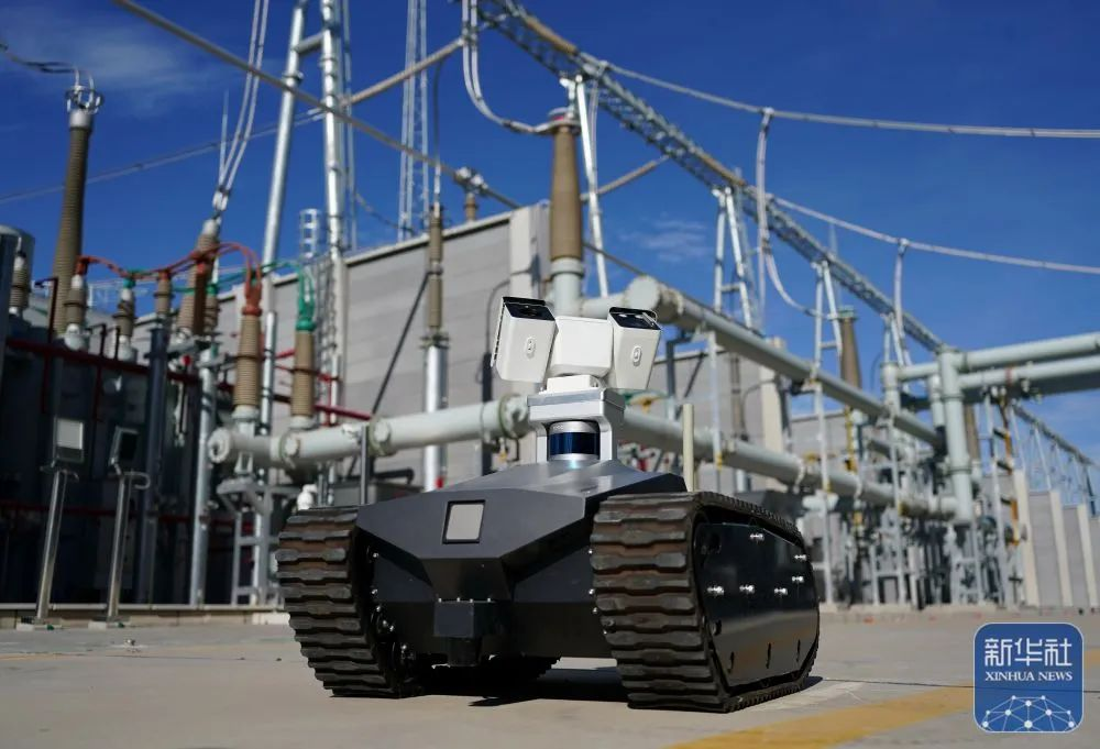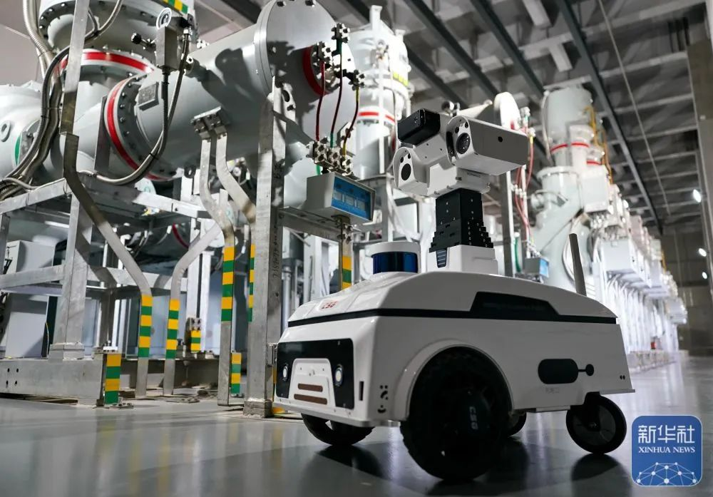 ↑9月5日,智能机器人在河北雄安新区“蓬勃之树”——雄安东500千伏超高压变电站内巡检。