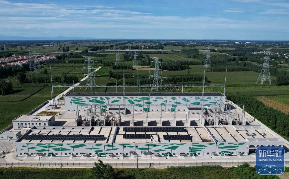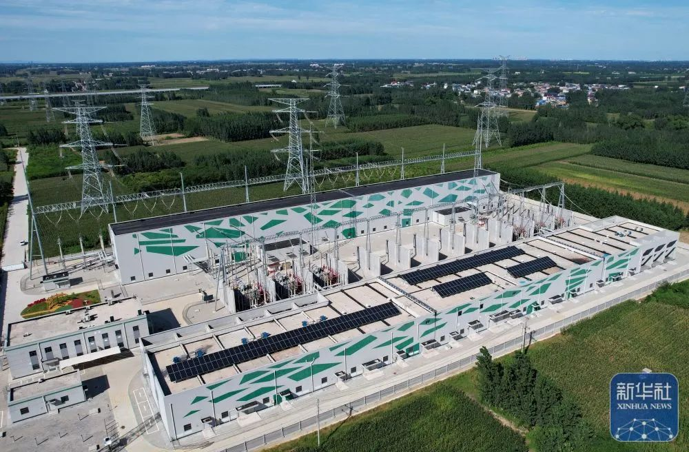 ↑9月5日拍摄的河北雄安新区“山水城市”——昝西 220千伏变电站外景(无人机照片)。