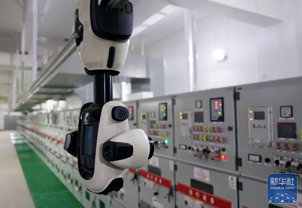 ↑9月5日,智能机器人在河北雄安新区“智慧能源立方”——剧村220千伏变电站内巡检。