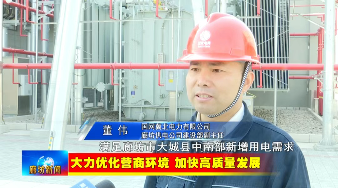 国网冀北电力有限公司廊坊供电公司建设部副主任 董伟:工程将减轻周边变电站的负荷压力,解决变电站串接问题和线路N-1过载问题,优化110千伏网络供电结构,满足廊坊市大城县中南部新增用电需求,加强和优化地区供电结构,提高供电可靠性。