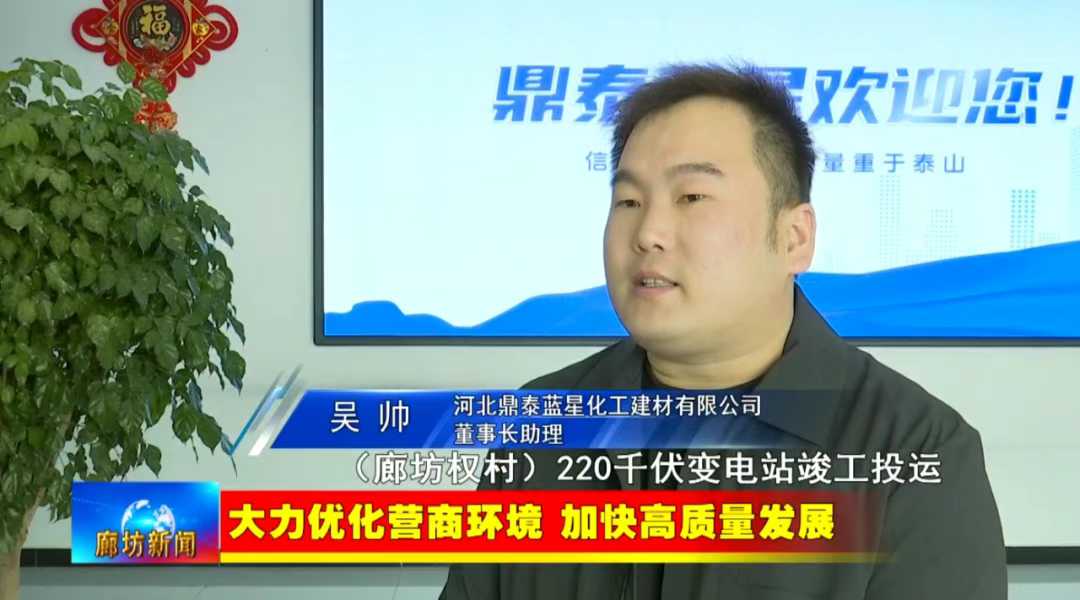 河北鼎泰蓝星化工建材有限公司董事长助理 吴帅:(廊坊权村)220千伏变电站竣工投运真是一场及时雨,我们就可以放心地增加生产线了,真是既满足了企业的生产用电需求,还为我们的改造升级、扩产增效提供了十足的电力保障。