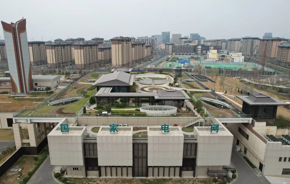 据国网河北雄安新区能源互联网建设管理办公室介绍,截至2024年底,雄安新区已新建220千伏变电站3座,新建110千伏变电站6座,新建10千伏开关站143座,投运张北至雄安特高压工程,实现“用坝上的风点亮雄安的灯”,建成雄安新区东北区域雄东至昝西能源输送主通道,电网建成区运行实现智能调度、配网自愈控制、柔性资源互动等新技术满足各种用电需求。 3月26日拍摄的河北雄安新区“智慧能源立方”——剧村220千伏变电站外景。该变电站屋顶覆土建设成公园,形成与城市融合共生的图景(无人机照片)。新华社记者 杨世尧 摄