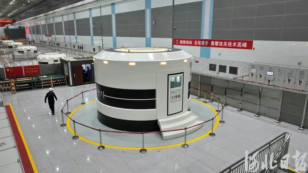 5月23日,笔者从国网新源河北丰宁抽水蓄能电站(以下简称“丰宁电站”)了解到,该电站累计发电量已突破100亿千瓦时。2024年12月31日正式投入商业运行的国网新源丰宁抽水蓄能电站11号机组。河北日报记者田明摄