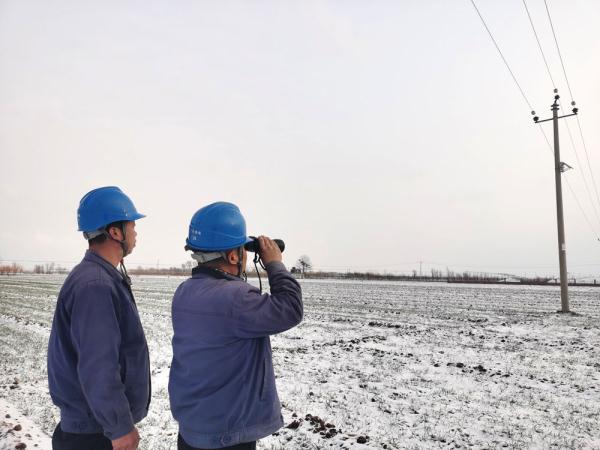 12月23日,在河北衡水市桃城区,输电运检人员迎着凛冽的寒风对220千伏衡Ⅰ、Ⅱ线路进行特巡。利用望远镜、红外测温仪等工具,运检人员详细检查线路情况,确保输电线路安全稳定运行。