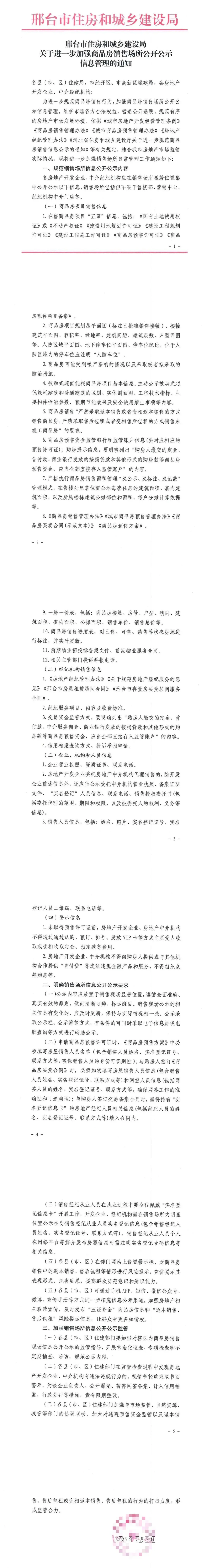 近日,邢台市住房和城乡建设局发布《关于进一步加强商品房销售场所公开公示信息管理的通知》,包含规范销售场所信息公开公示内容、明确销售场所信息公开公示要求和加强销售场所信息公开公示监管三部分内容,旨在维护市场各方合法权益,营造公开透明、规范有序的房地产市场发展环境。