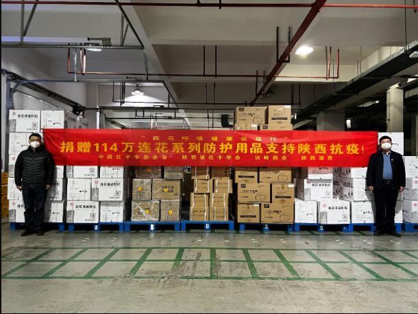 1月2日,价值114万元的连花防疫物资顺利抵达西安,通过陕西省红十字会,经陕药派昂公司配送,分别向西安交通大学第一附属医院、西安市胸科医院、西安市第八医院、陕西中医药大学附属医院等省内各大医疗机构及疫情防控相关工作人员进行捐赠。