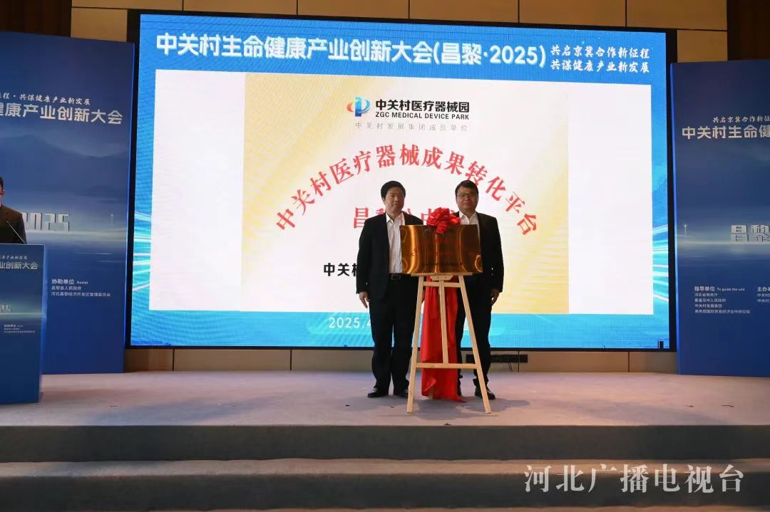 大会举行中关村医疗器械成果转化平台昌黎分中心揭牌仪式。中关村医疗器械成果转化平台是中关村发展集团在医疗器械领域的科技成果转化专业化服务平台,中关村医疗器械成果转化平台昌黎分中心成立之后将吸引更多成果转化项目关注昌黎,每年向昌黎推荐不少于10个成果转化项目,引进符合当地产业发展方向的成果转化项目落地。