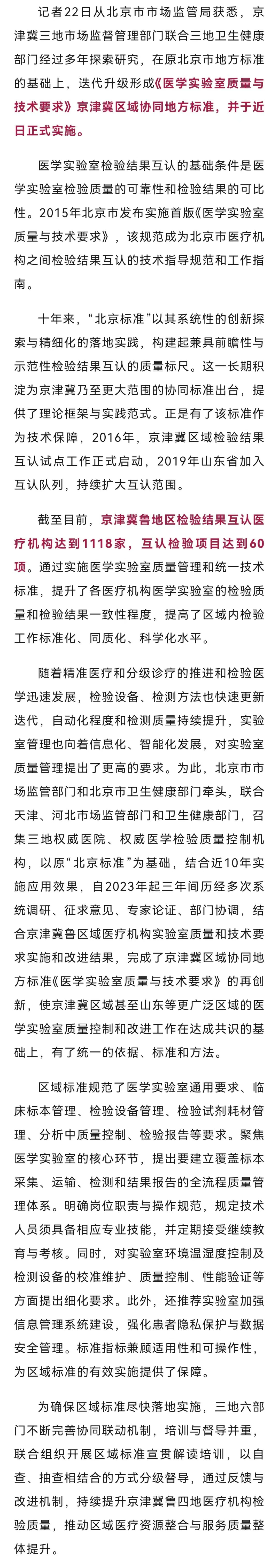 方便了!京津冀鲁1118家医疗机构检验实现结果互认