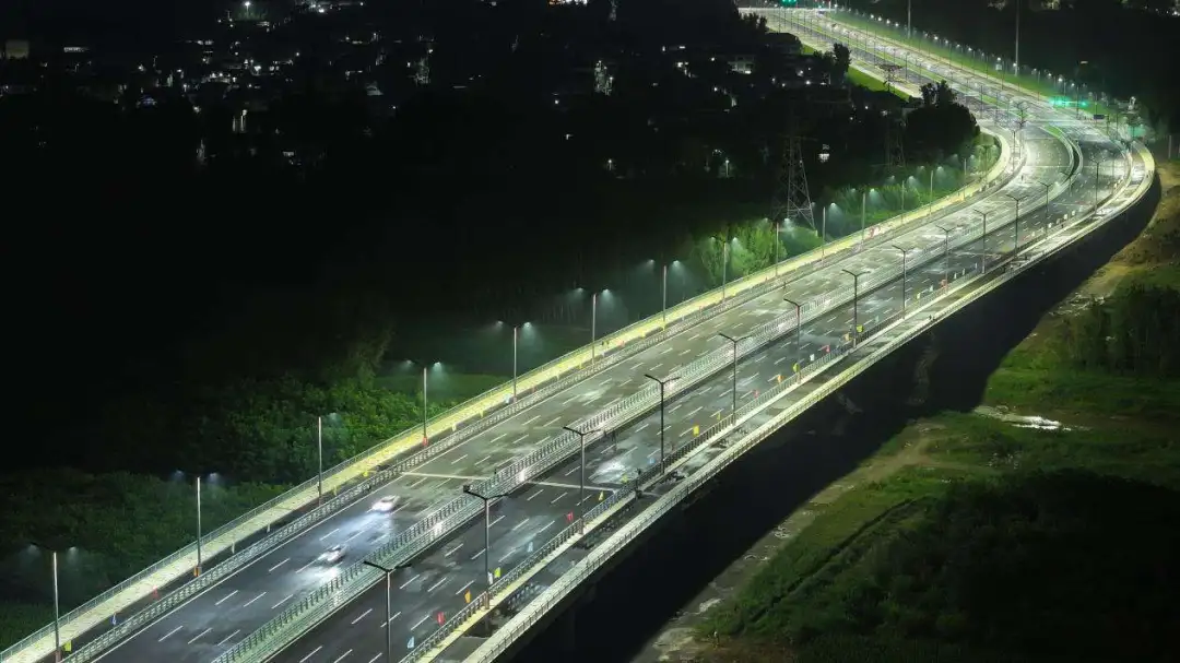 作为涿州“东拓北延”战略的核心工程,腾飞大街北延跨北拒马河大桥是一座集道路、桥梁、排水等六大系统于一体的现代化工程,全长2723.3米、宽50米,双向八车道,设计时速60公里,是京港澳高速与京石高铁走廊带内一条新的贯通南北城市主干道,总投资7.05亿元,宽阔的道路成为支撑涿州城市交通网络的“钢铁脊梁”,使涿州市码头镇到高新区车程缩短至10分钟。同时,该工程还紧密连接起北京房山、丰台等区域,成为“联通北京”的新枢纽。