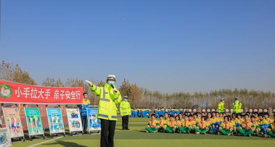 为进一步做好中小学生交通安全教育工作,提高在校学生安全意识。13日,河北省清河县公安局交通警察大队的交警走进各中小学开展“守法规知礼让、安全文明出行”主题交通安全宣传活动。图为主题交通安全宣传活动现场。 王国惠 摄