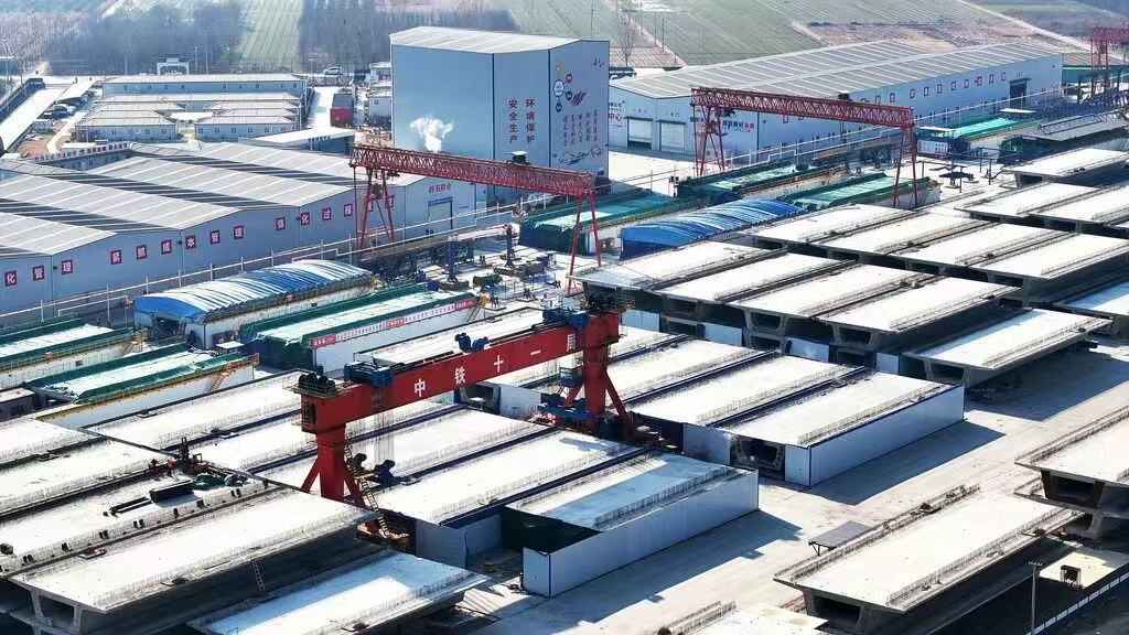 12月5日,承担石雄铁路站前2标施工范围内757榀双线箱梁预制任务的中铁十一局安国制梁场工人在进行制梁作业。