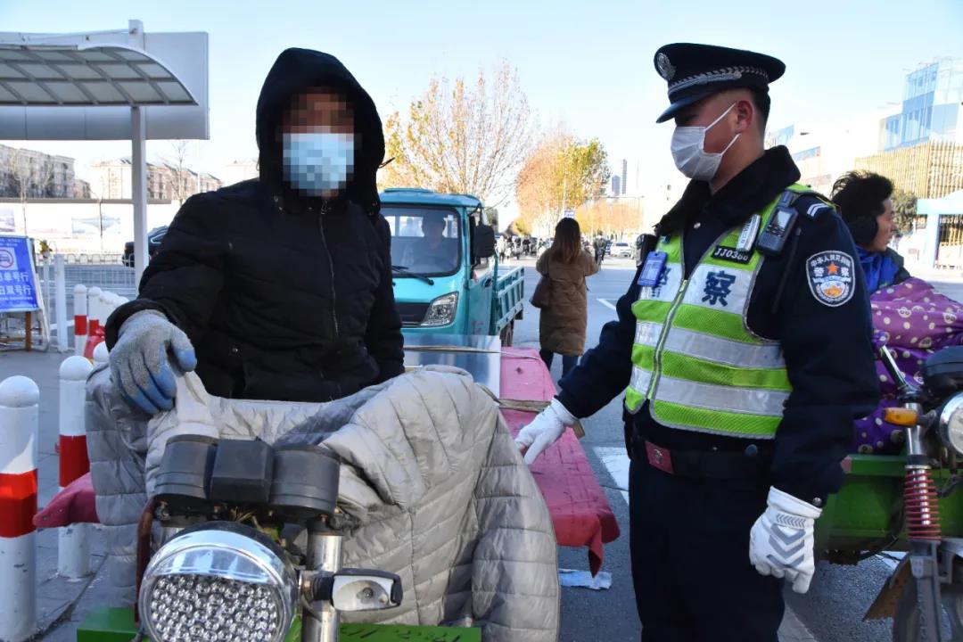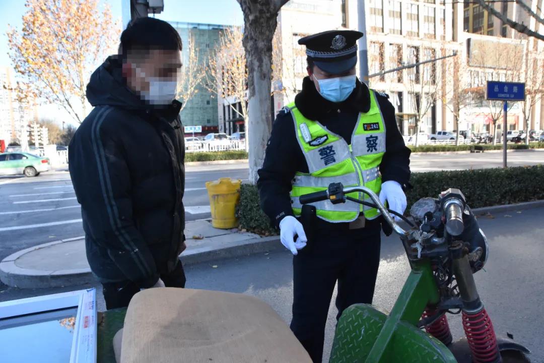 “您好,您驾驶的电动三轮车装载货物超长,且装载的玻璃为易碎品,行驶途中如遇紧急情况刹车,极易造成交通事故。”12月17日早上,在市公安局交巡警支队丛台二大队东柳丛台岗,民警吴铮正在对一位电动三轮车驾驶人进行批评教育。