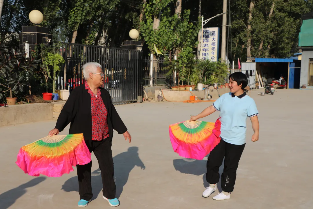 在河北省保定市涞水县一家养老院,特教中心学生正在和老人学习扭秧歌