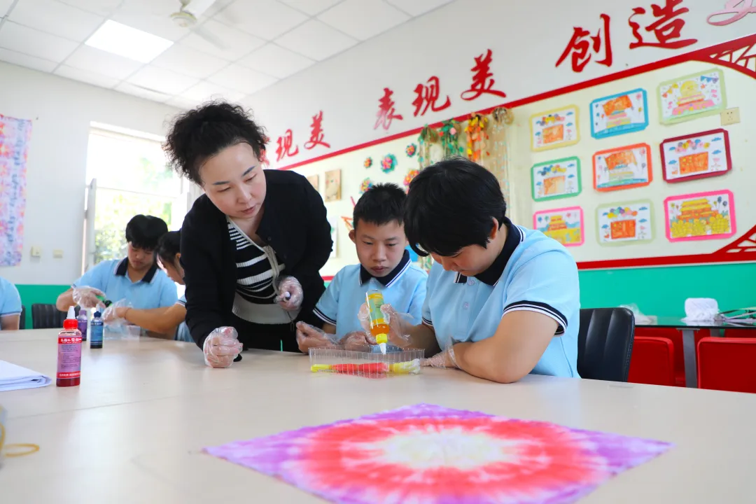 近年来,涞水县全面贯彻落实“强化特殊教育普惠发展”的要求,积极营造“多样包容、渐进互融、欣欣向荣”的育人环境。通过加强特殊教育基础设施建设、引入先进教学设备和技术、搭建家校合作平台等措施,关注特殊儿童的成长需求,整合社会资源,为特殊儿童提供更多样化的学习与实践机会。下一步,涞水县将进一步优化特殊教育资源配置,提升特殊教育服务质量,推动特殊教育向更加开放、包容、共享的方向发展。在河北省保定市涞水县特教中心,学生们正在制作扎染