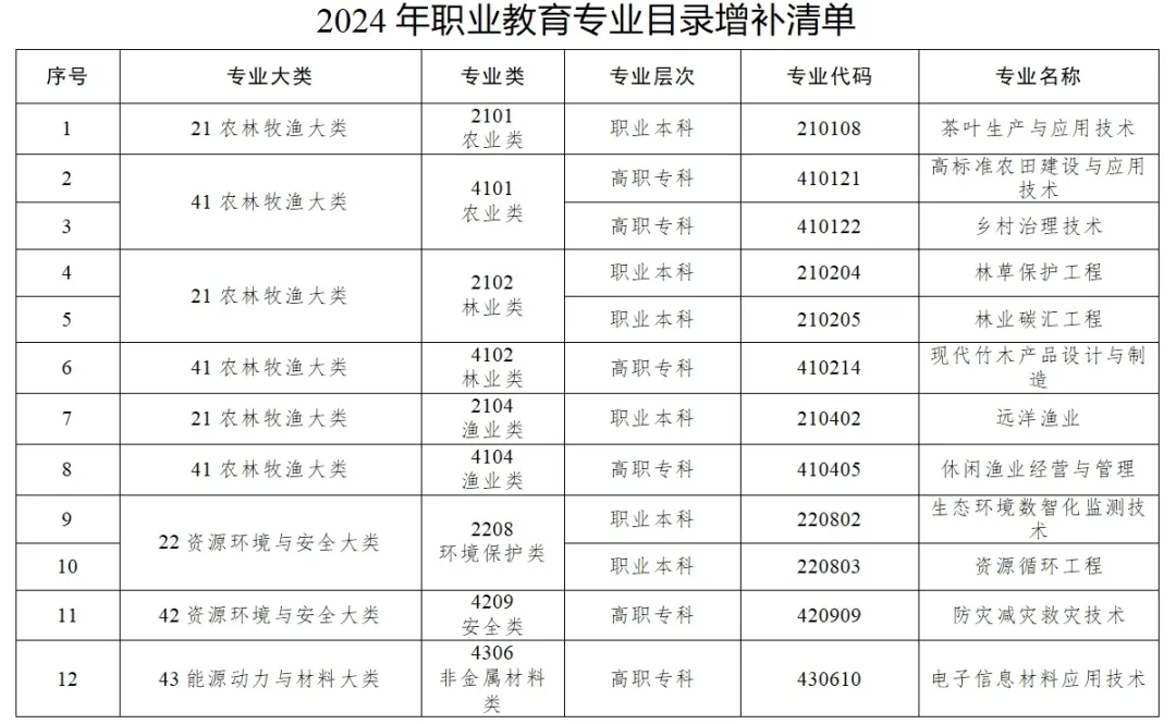 据介绍,职业教育专业目录实行动态管理,每五年一大修,每年动态增补。此次公布的新增补专业,所有职业院校均可依法自主设置,备案后即可于2025年招生。但举办相关专业,需具有相应的教学场所、实习实训条件、专业师资、合作企业等,还要有相应的课程教材资源、人才培养方案等。教育部负责专业设置的宏观管理,明确专业设置标准,引导学校科学合理设置专业。省级教育部门根据区域产业布局和专业布点情况,结合学校办学条件,对学校专业设置进行事前指导,并加强事中、事后监管。此外,国家和地方也有专门的针对专业办学质量的督导评价,社会上也有独立的第三方评价,共同督促提升专业设置与建设质量。