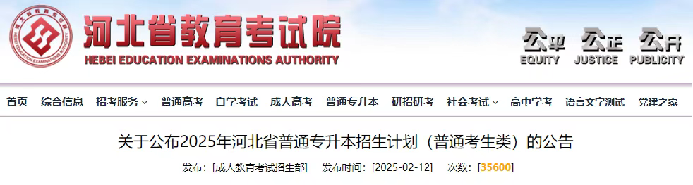 关于公布2025年河北省普通专升本招生计划(普通考生类)的公告