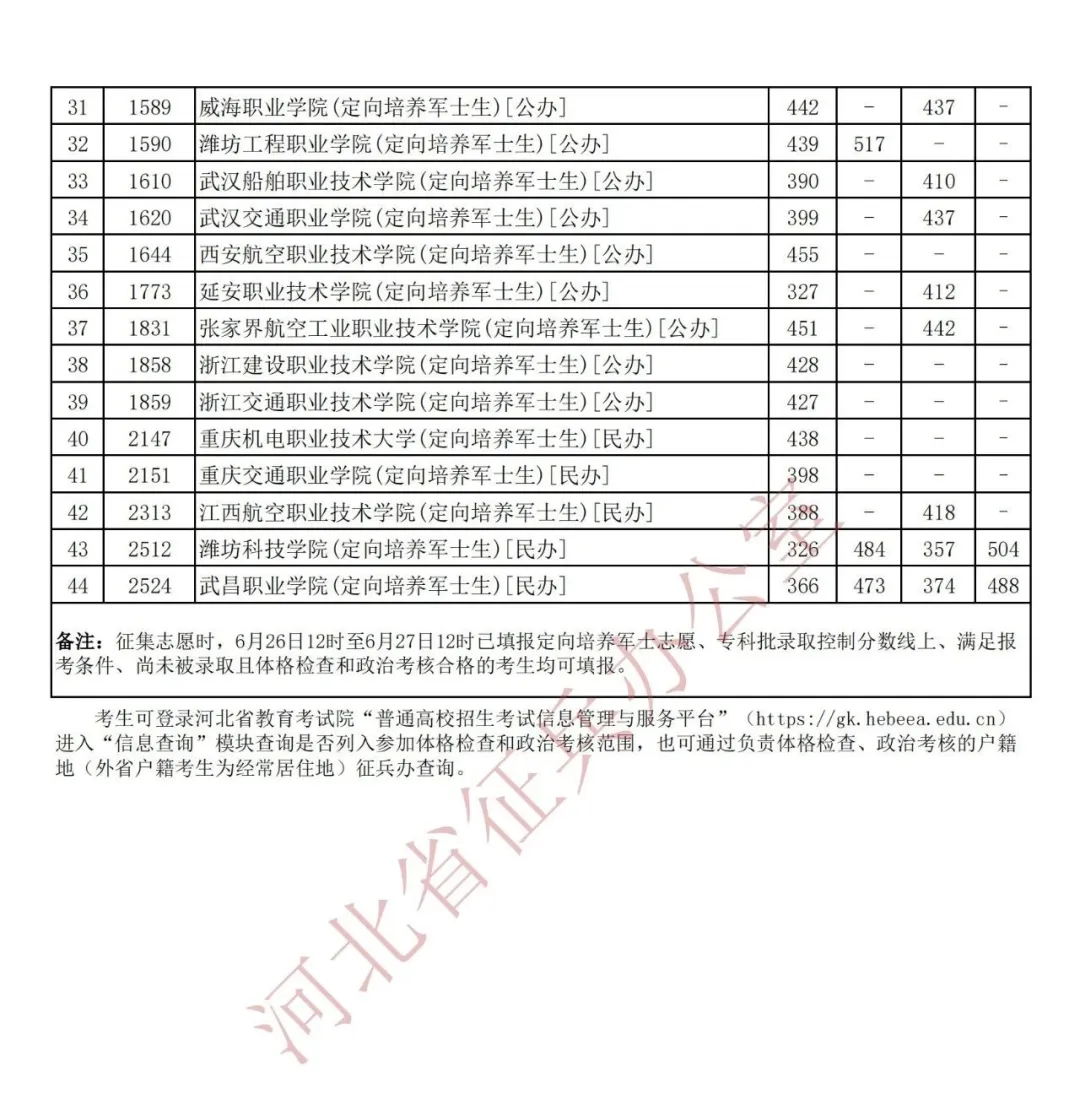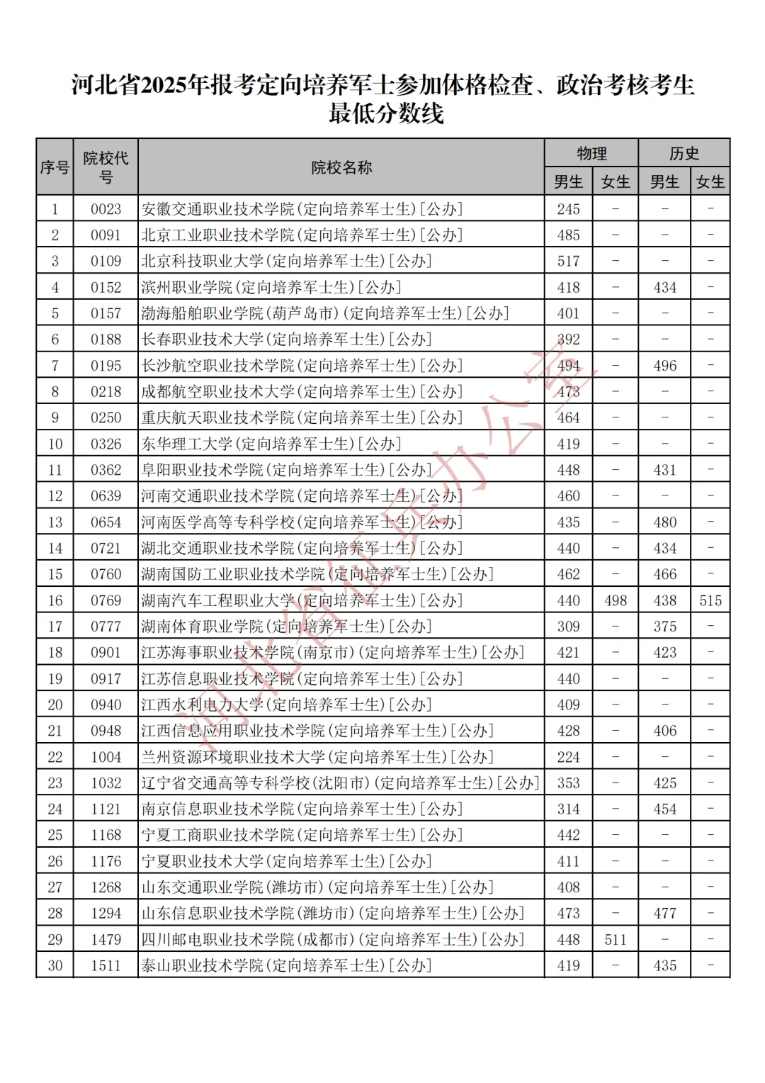 河北省征兵办公室最新发布河北省2025年报考定向培养军士参加体格检查、政治考核考生最低分数线↓↓↓