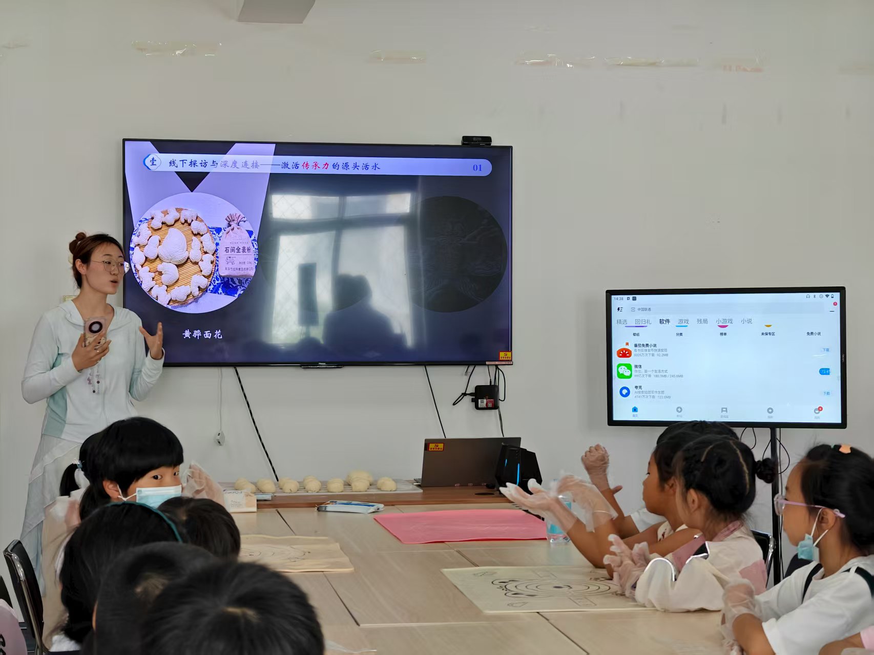 东北大学秦皇岛分校的“青声习语”社会实践团,创新采用“线上教学+线下体验+理论宣讲”模式,将文化体验融入社会实践。他们线上邀请国家级、省级非物质文化遗产代表性传承人,通过直播指导秦皇岛社区儿童制作面花、风筝与泥塑,让孩子们在揉面、扎骨架、塑形的过程中,领悟“匠心坚守”“文化自信”等理念。线下,他们结合非遗体验开展理论宣讲,用通俗易懂的语言传递“专注”“创新”精神。正如指导老师郑建伟所言:“非遗技艺带着生活温度,是宣讲思想的生动载体。”