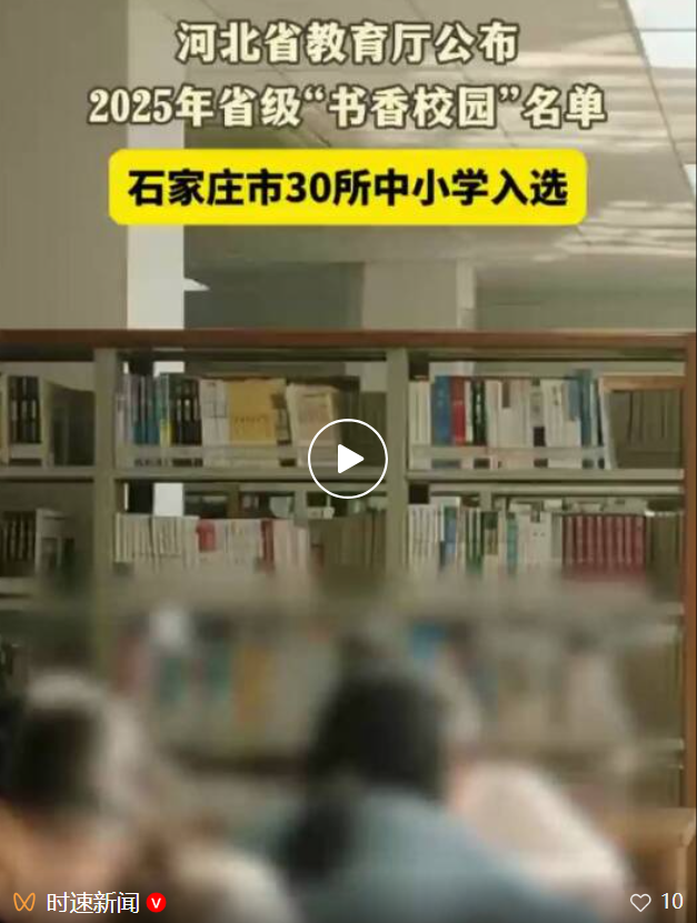 记者从石家庄市教育局获悉,在日前公布的2025年省级“书香校园”认定名单中,石家庄市第四十八中学、中华大街小学、融创中心第一小学、柏林庄学校等30所学校入选。