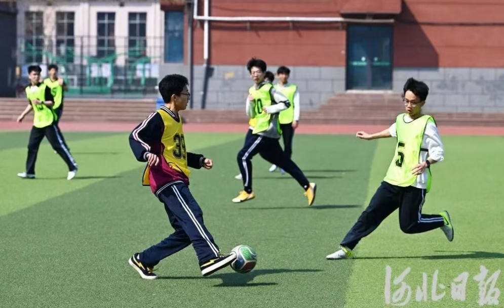 3月20日,河北内丘中学学生在操场上踢足球。河北日报记者 赵永辉摄