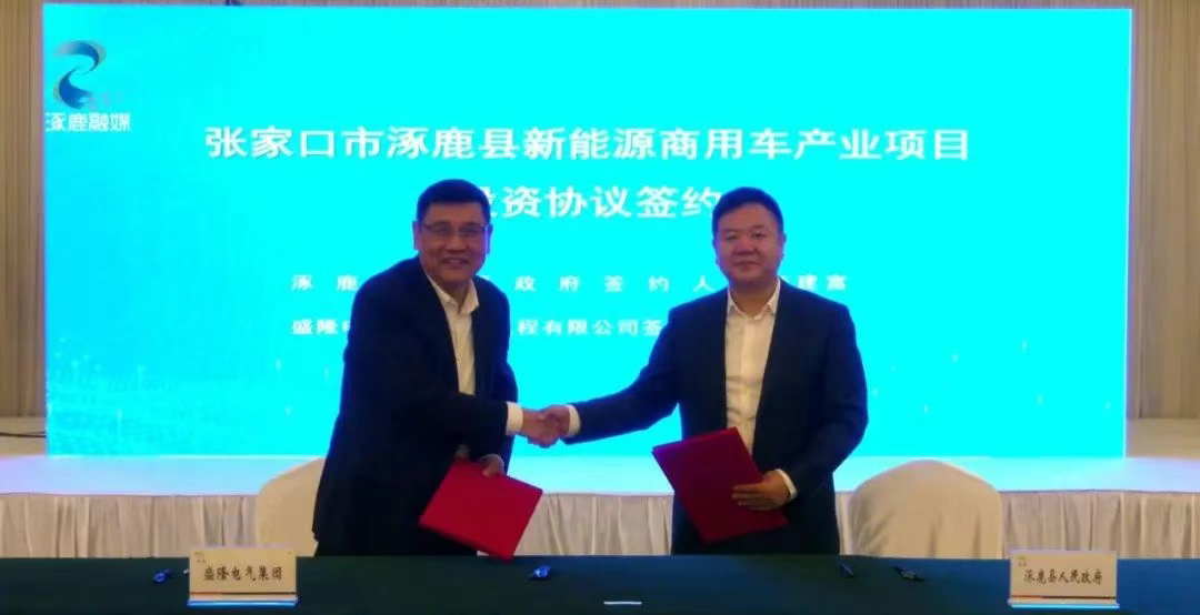 闫利艳与周明旺共同签署了“张家口市涿鹿县新能源商用车产业项目战略合作协议”;县长李建富与周明旺签署了“张家口市涿鹿县新能源商用车产业项目投资协议”;盛隆电气集团电力工程有限公司、张家口产业投资控股集团有限公司、涿鹿经开投资发展有限公司完成了“张家口市涿鹿县新能源商用车项目三方合作协议”签约;张家口产业投资控股集团有限公司与涿鹿经开投资发展有限公司也达成了“市县平台公司合作协议”。 县委常委、常务副县长张应红主持仪式。据了解,该项目计划总投资21亿元,总用地面积200亩,建筑面积10万平方米,新增设备约3000台(套),将建成年产10万辆换电式纯电动运输车生产基地。项目全部投产后预计年产值60亿元,实现年综合税收约9亿元。项目就业人数约700人,带动本地配套产业产值约120亿元。该项目的推进将为涿鹿经济社会发展注入强劲动力,助力当地产业升级,推动绿色发展,成为涿鹿发展新引擎。