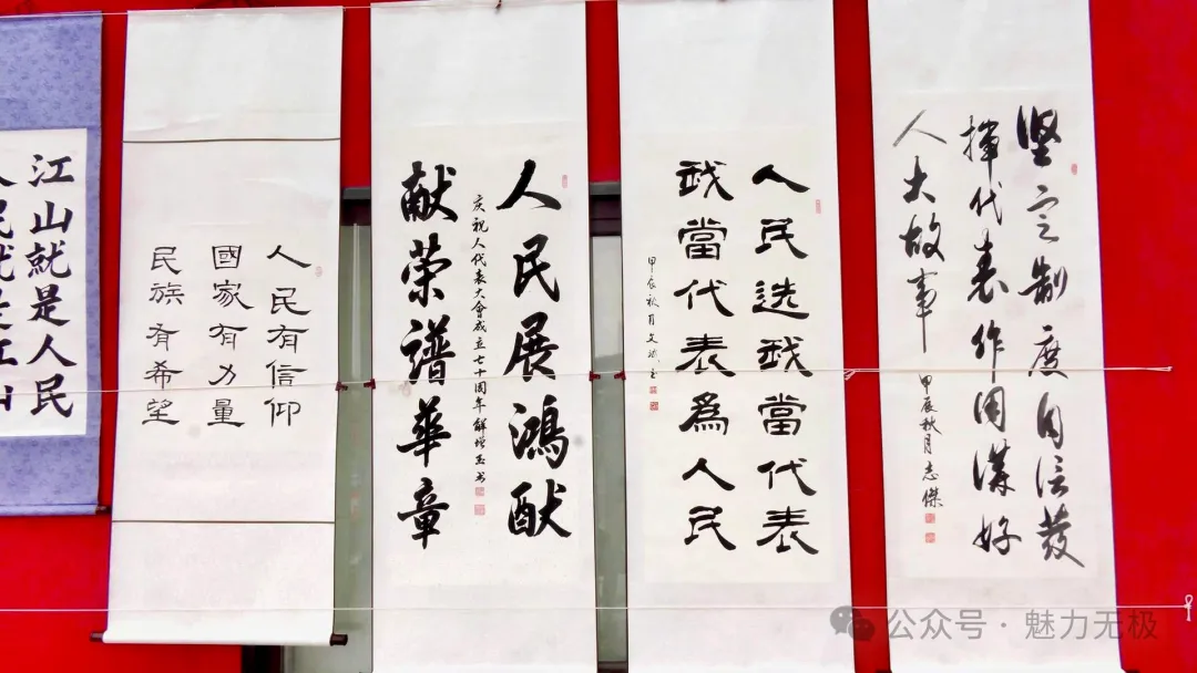 这些展出的作品主题鲜明独特,内容丰富多彩,格调高雅清新,凝聚着创作者们的智慧结晶和心血付出,饱含着对人民代表大会制度的坚定信念以及美好期许,生动反映了县人民代表大会及常委会践行全过程人民民主这一重大理念的现实实践,全面展现了全县各级人大代表、人大工作者团结奋进、昂扬向上的崭新作为和精神风貌,更是对全国人民代表大会70年光辉历程的精彩诠释。
