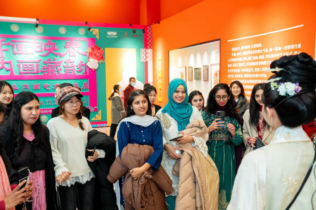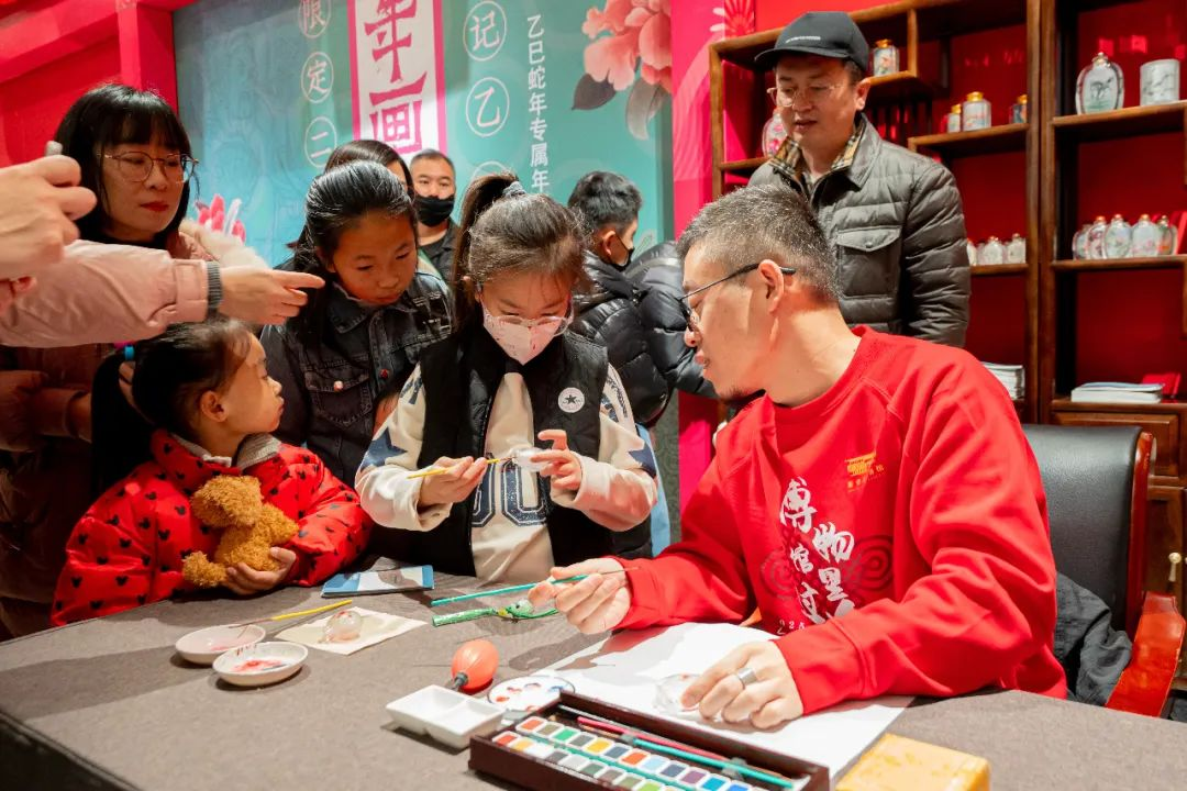为丰富展览内容,增强互动体验,博物馆为观众精心准备了木板画展演及互动体验,特邀河北省工艺美术大师粘跃峰现场展示内画工艺,还推出了具有传统年画特色的48枚打卡印章,供观众体验。针对青少年,组织了“拾年味 赏年画——木版年画体验”主题社教活动,带领青少年近距离观赏年画精品,探索年画背后的民俗故事,体验手工制作年画。木板画体验