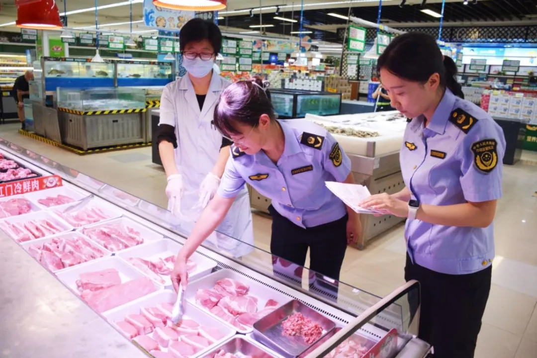 信都区市场监管局组织检验人员对商超肉类进行监督抽检 图片来源:信都区市场监管局