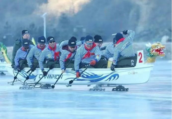 在刚刚结束的河北省第五届冰雪运动会上,12人龙舟100米直道竞速决赛吸引了广大冰雪运动爱好者目光。