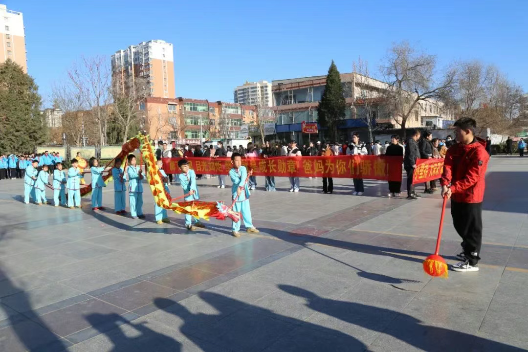 观看完学生们的精彩展演,家长们说:“看着孩子们活力四射的样子,很开心。学校举办这样的活动,既能锻炼他们的身体,又能传承传统文化,太有意义了!”学生们展示舞龙。张旭宁 摄