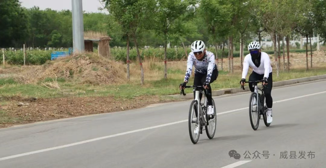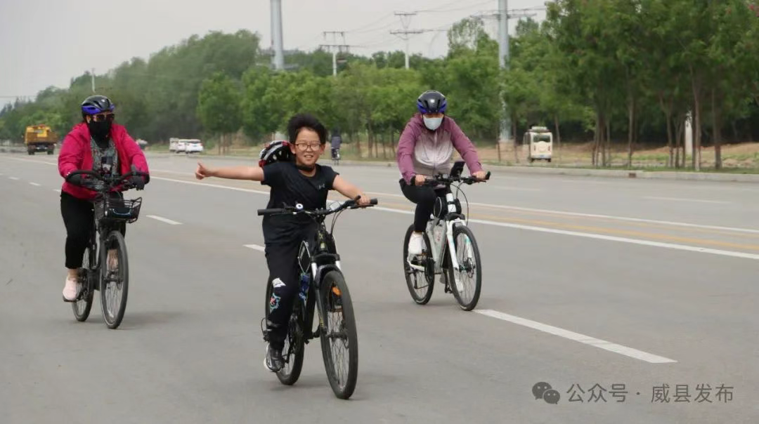 随着发令笛响,来自社会各界的600余名骑行爱好者分成两个方队出发,本次骑行以河北粟祥农业科技有限公司为起点,途经邢台应用技术职业学院、印月湖公园、今喜盛车业、嘉之派门窗、碧威汽车、国昂石墨烯产业园等地,最终回到河北粟祥农业科技有限公司,全程约30公里。骑行队伍在绿树花海中穿行,既体验了运动的乐趣,又亲身感受了威县高质量发展的新气象。
