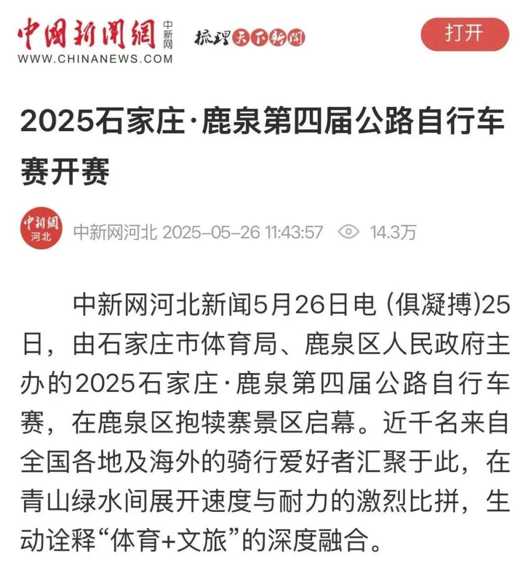 这场速度与风景交织的盛宴,不仅是骑行爱好者的舞台,更是鹿泉向全国展示城市活力的窗口。未来,鹿泉将继续以赛事为媒,推动体育、文旅、消费深度融合,为城市发展注入新活力、新动能。