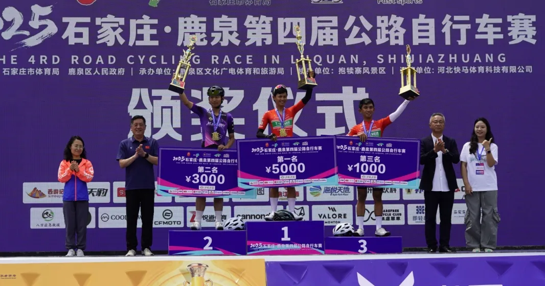 鹿泉区作为河北省体育消费试点区,通过举办体育赛事聚合流量并转化为消费动能。本届赛事深度融合“体育+文旅”,赛前设置单车集市,汇聚骑行装备、本地特产等展位,激活城市消费新场景。 颁奖仪式