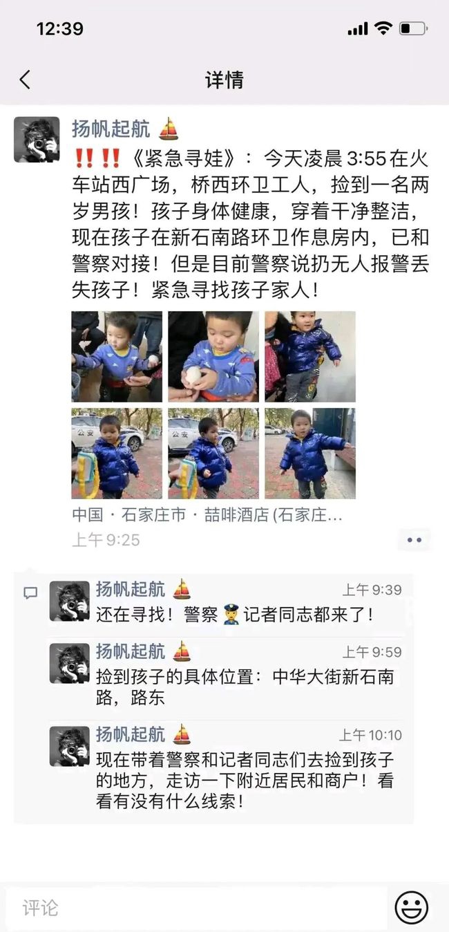 当天上午,走失的孩子被送往石家庄社会福利院,如果您认识这位孩子或者有相关信息