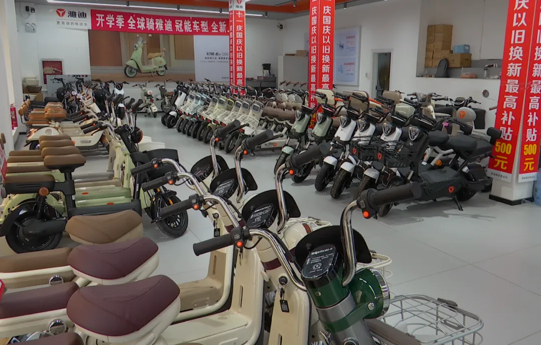 红火的不仅是家电卖场,电动车消费市场也持续升温。以旧换新优惠政策实施以来,我县各大电动车销售门店同样热闹非凡。电动自行车产品琳琅满目,前去咨询和进行“以旧换新”的消费者络绎不绝。顾客一边对比电动车的换新型号,一边了解以旧换新政策。