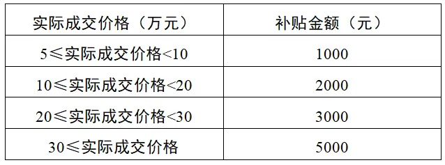 购买新建商品住房分段定额补贴标准:购买120平方米以下(含120平方米)住房的补贴20000元/套;购买120平方米以上住房的补贴25000元/套。