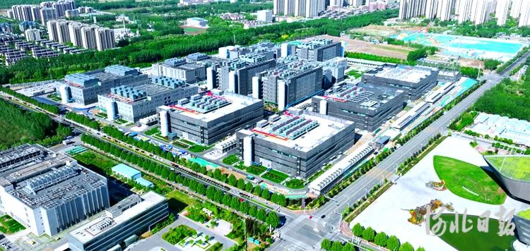 一个个亮眼成绩、一组组精彩数据,见证着在数字经济新赛道上加速奔跑的廊坊。航拍的润泽国际信息港A区。侯子清 摄