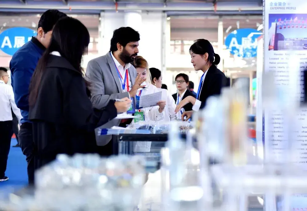 2024年10月10日,采购商(中)在2024年中国·永年紧固件基地国际采购大会现场了解紧固件产品信息。新华社记者王晓摄