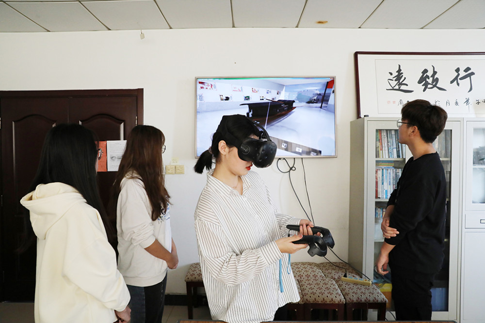 宣传部科研团队带领师生将虚拟现实技术与党史学习教育深度结合,先后开发并投入运行“百年红色金融路”“百年党史展厅”“中国共产党人精神谱系展馆”等交互式认知平台,让学生们佩戴VR眼镜、手持VR手柄,在虚拟的世界里学习百年党史,感受红色文化,获得了更强的沉浸感体验。而且平台采用的学习资料权威,学习内容丰富,确保了史料信息的准确性与呈现形式的多样性,取得了良好的思政育人的效果。