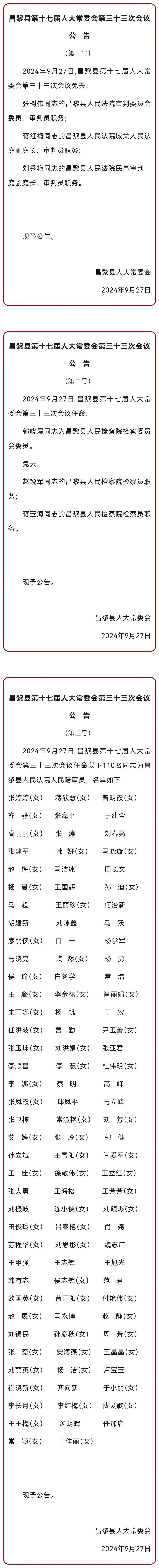 涞源县第十七届人民代表大会常务委员会第二十七次会议于2024年9月27日表决通过,任命: