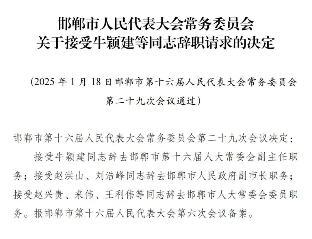 东光县第十八届人民代表大会第五次会议于2025年1月14日表决通过: