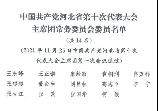 中国共产党河北省第十次代表大会主席团常务委员会委员名单
