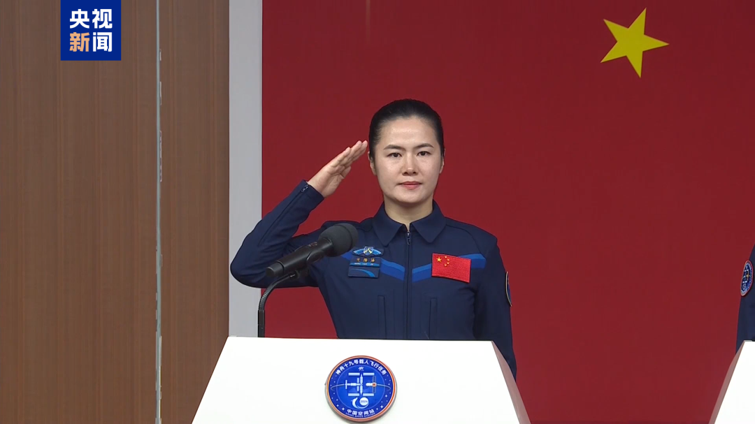 这是神舟十九号航天员蔡旭哲(中)、宋令东(右)、王浩泽。