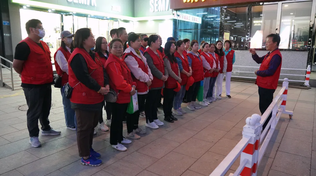王金锁带领志愿者在正定小商品夜市提供志愿服务