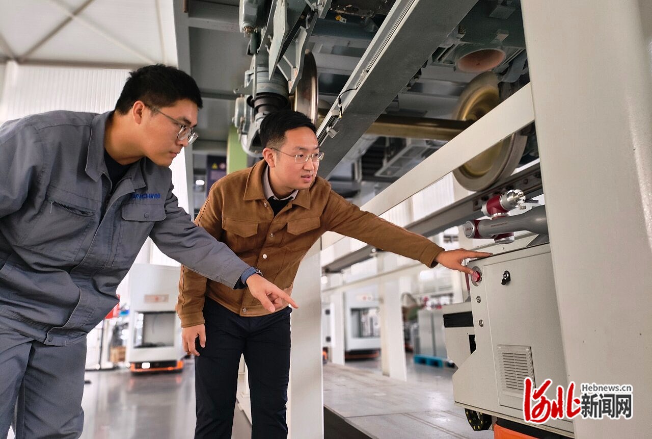 开创客咖啡厅、做众创空间、运营孵化器、打造共享工厂……10年间,在这条独特的赛道上,王孟昭一步步经营着自己的梦想。12月10日,王孟昭(右)在机器人共享制造工厂与工程师一起查看设备运行情况。 河北日报记者 孙 青摄