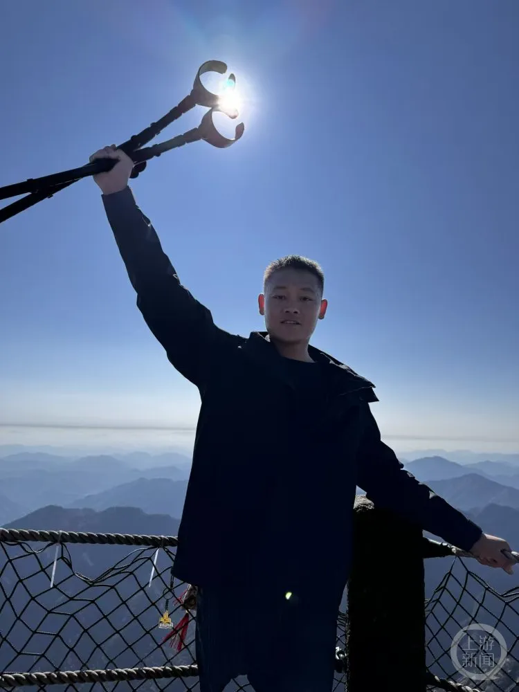 慢慢地他开始攀登全国各地的名山大川。2024年夏天,他报名参与了“五岳特种兵”活动,用4天时间就成功登顶五岳,并取得了第124名的好成绩。一年的时间里,他累计登山30多座。
