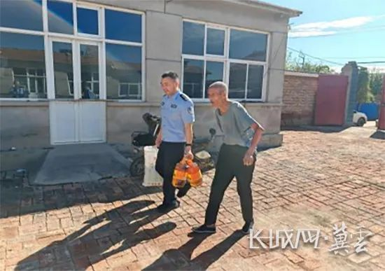 周友江的经验来自一次次的冲锋,也来自对自己的严格要求——训练场上,从不懈怠,即使已经练就铜臂铁拳、飞针穿玻璃等技能,仍然坚持不懈地锻炼力量和速度;在工作中,有勇有谋,凭借着一腔热血和对公安工作的热爱,一直冲锋在前。周友江看望孤寡老人。廊坊市公安局 供图