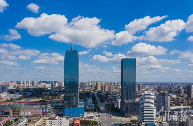 近年来,保定市强化大气污染治理,空气质量持续改善。这是蓝天白云下的保定主城区。通讯员杨佳义摄